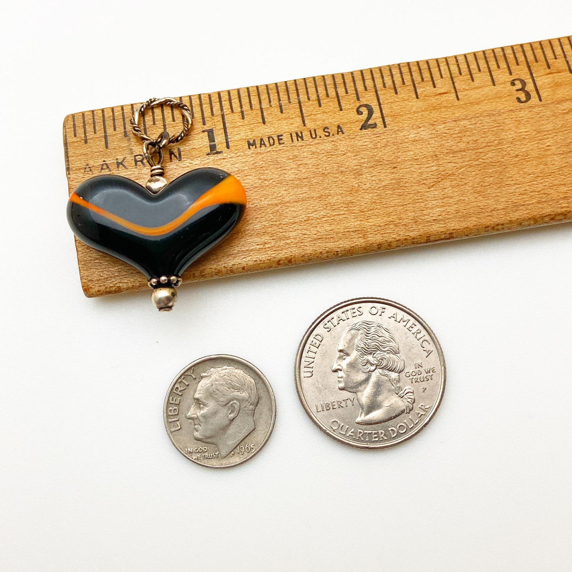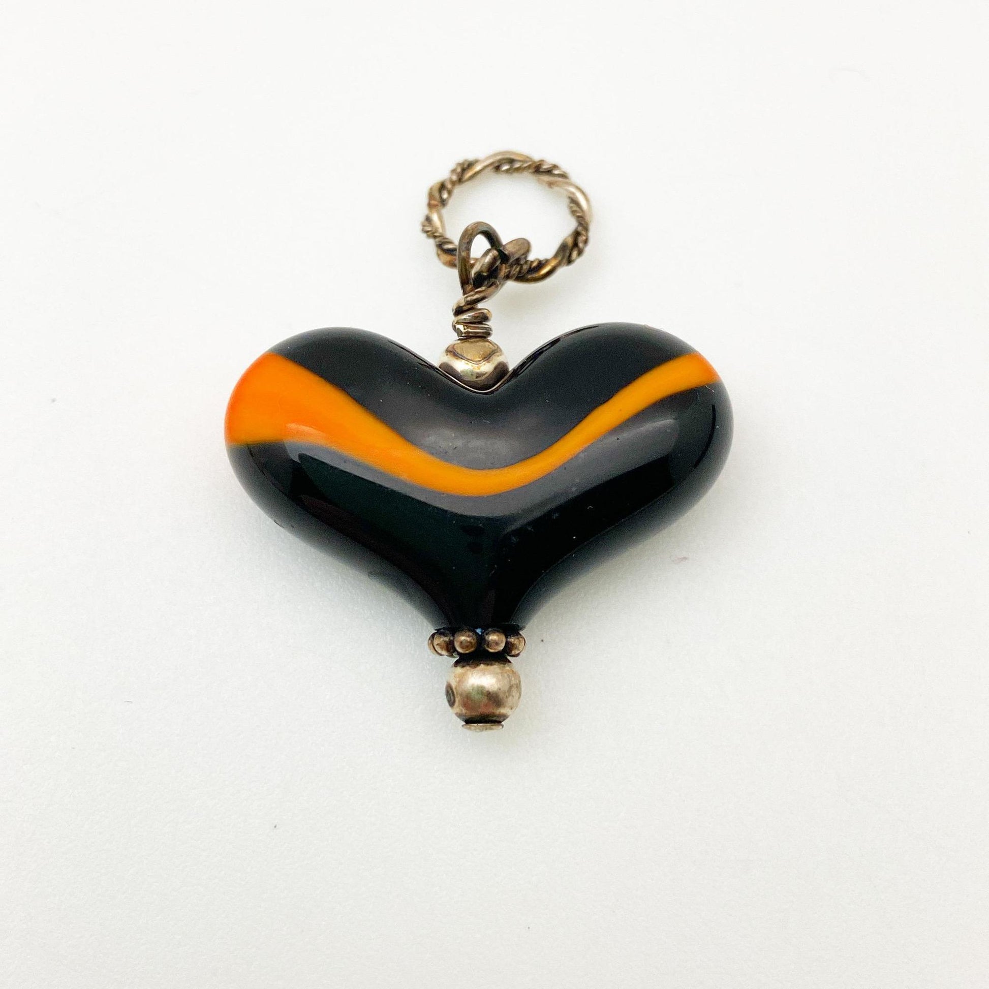Pendant - Black Heart with Orange Band - Handmade Glass
