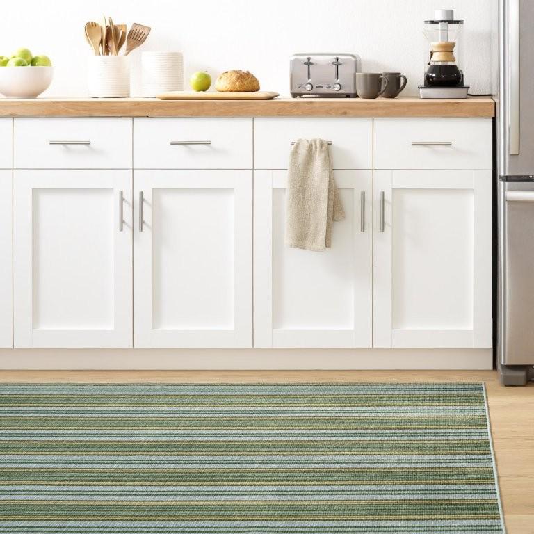 Our rug designer has taken her most popular rug weaves and translated them into chic, machine washable rugs. The rugs are soft underfoot, spill-proof, water-resistant, and stain-resistant. They have an anti-slip backing and the top has a very low, smooth pile (soft to the touch). Great for homes with pets, kids, busy families. Perfect for high-traffic areas like entryways, mudrooms, and kitchens. These rugs feature color matched serging and an anti-slip grip TPR backing. Machine washable, 100% polyester, machine made, indoor use only, color matched serging on all 4 sides, backing material: TPR anti-slip grip, designed in Massachusetts USA, committed to fair labor practices, high traffic friendly.