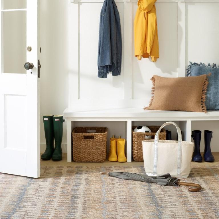 Our rug designer has taken her most popular rug weaves and translated them into chic, machine washable rugs. The rugs are soft underfoot, spill-proof, water-resistant, and stain-resistant. They have an anti-slip backing and the top has a very low, smooth pile (soft to the touch). Great for homes with pets, kids, busy families. Perfect for high-traffic areas like entryways, mudrooms, and kitchens. These rugs feature color matched serging and an anti-slip grip TPR backing. Machine washable, 100% polyester, machine made, indoor use only, color matched serging on all 4 sides, backing material: TPR anti-slip grip, designed in Massachusetts USA, committed to fair labor practices, high traffic friendly.