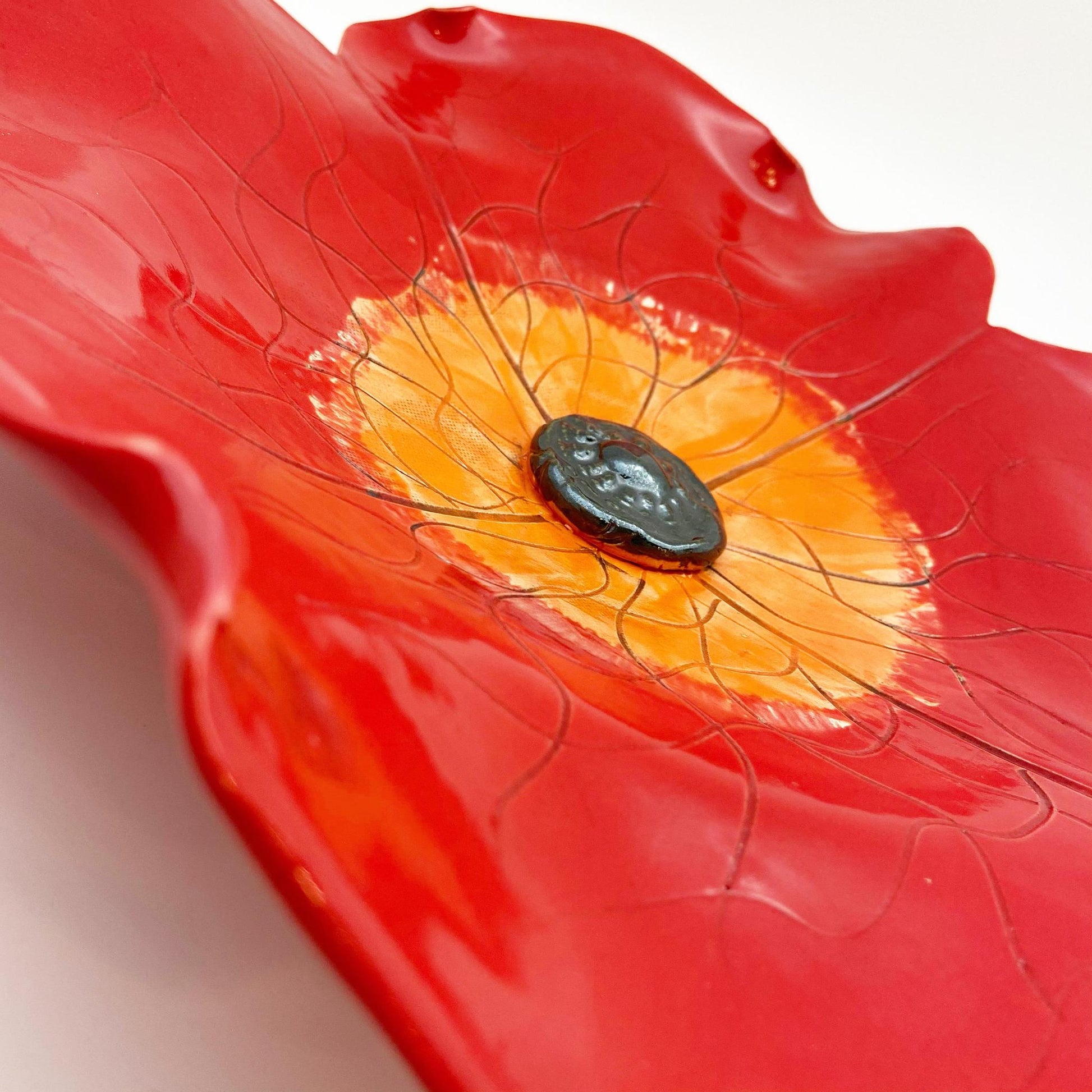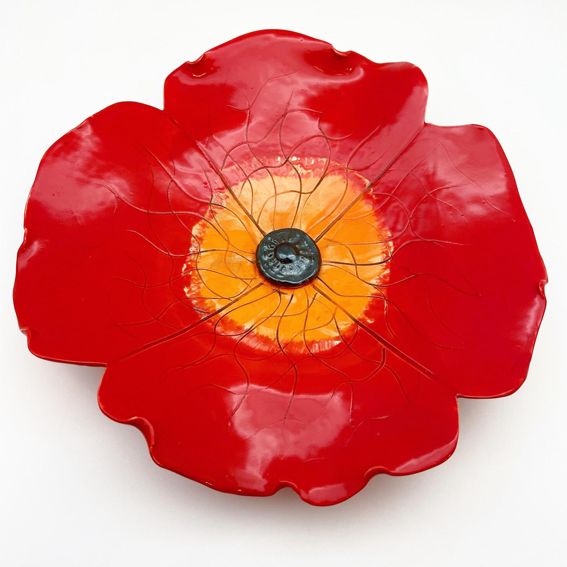 Ceramic Wall Art - Red Poppy Flower - Medium