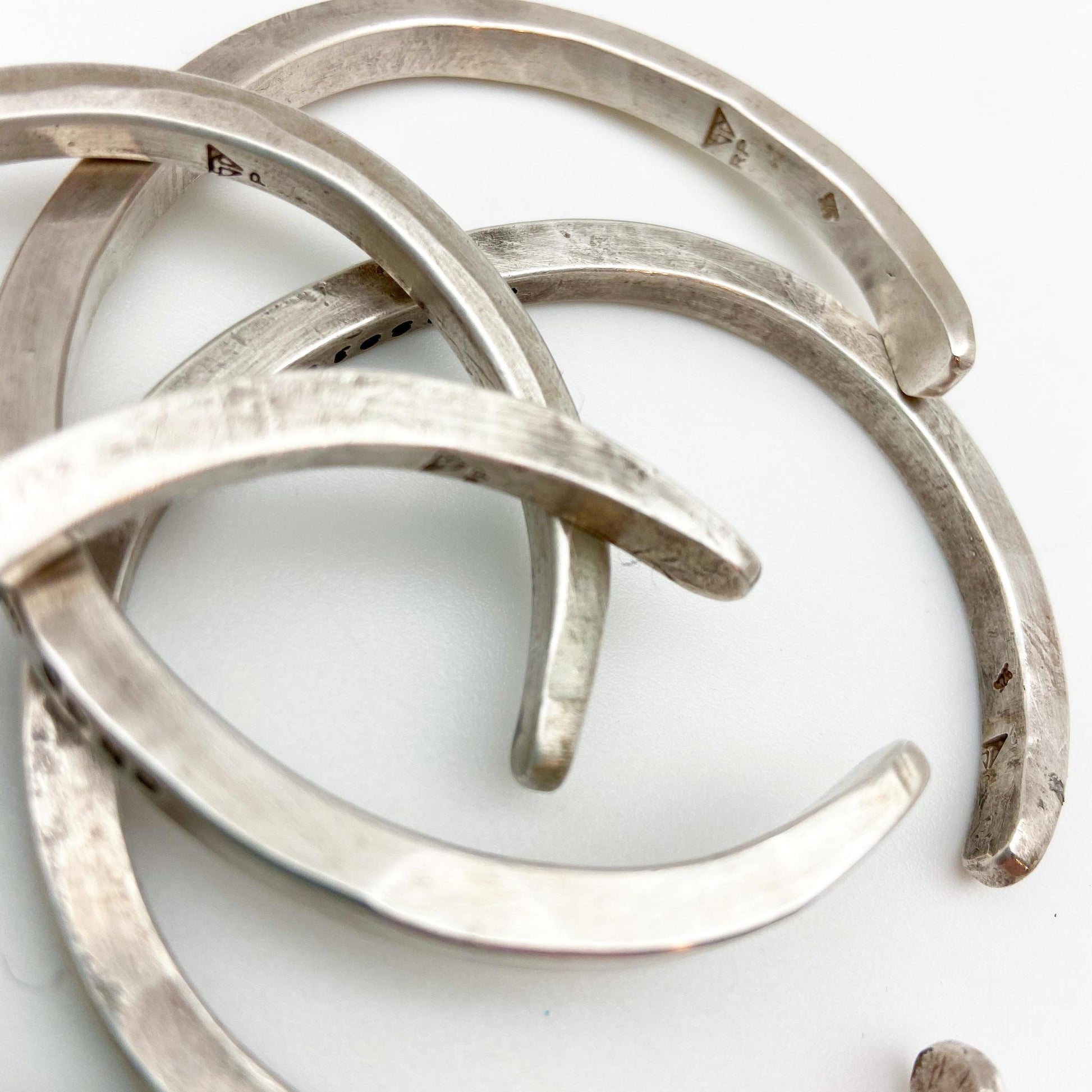 All of these pieces feature unique strikemarks. You can also find the artist's mark and the "925" sterling silver guarantee stamp on each.