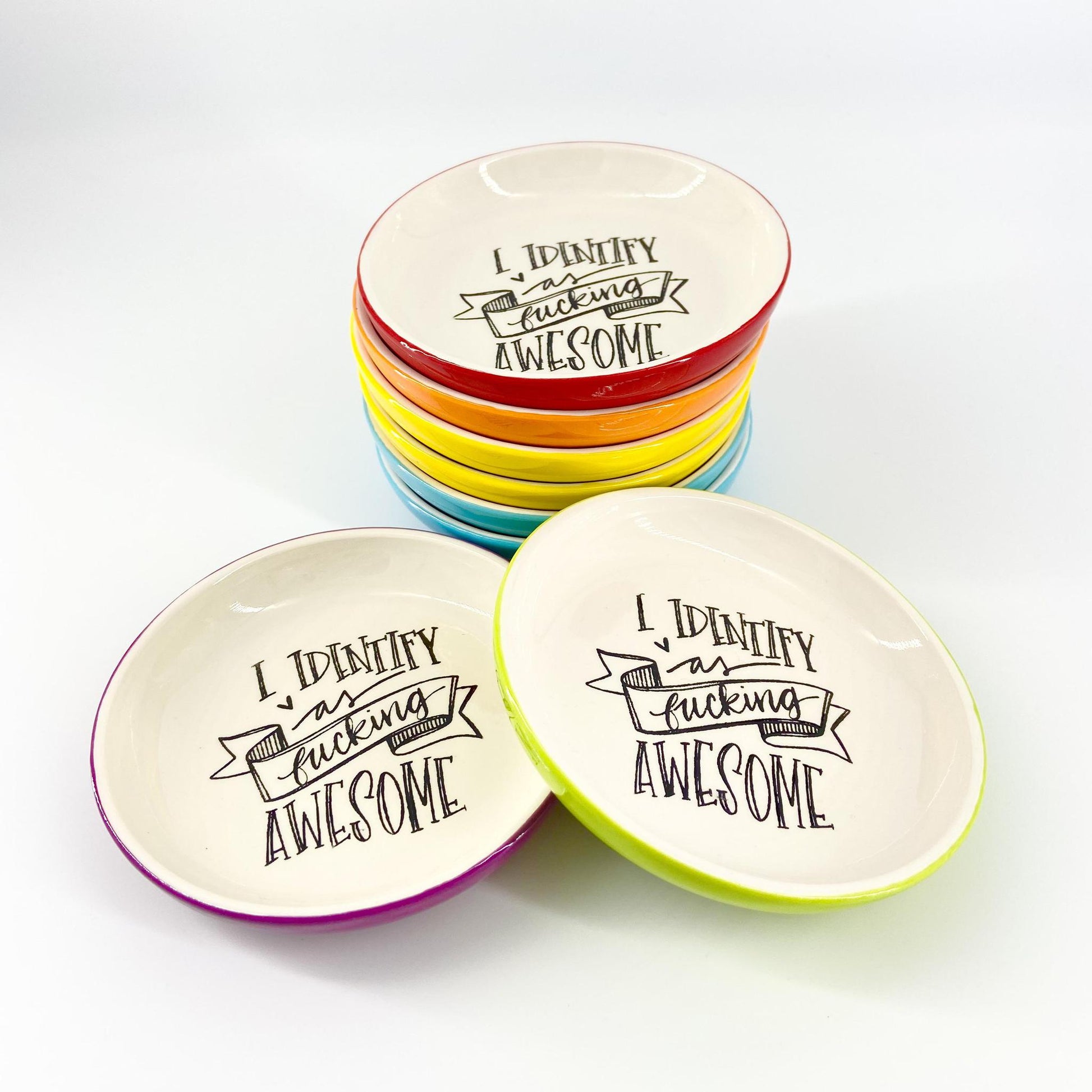 This artist is a hand-lettering genius! Each of these ceramic trays features her own bold, humorous quotes. Each tray is handmade, which means that no two trays are exactly alike. They makes us very happy. And, they are fantastic gifts. Empowered people, empower others. These trays are a bit of encouragement that comes with levity. The perfect combo.