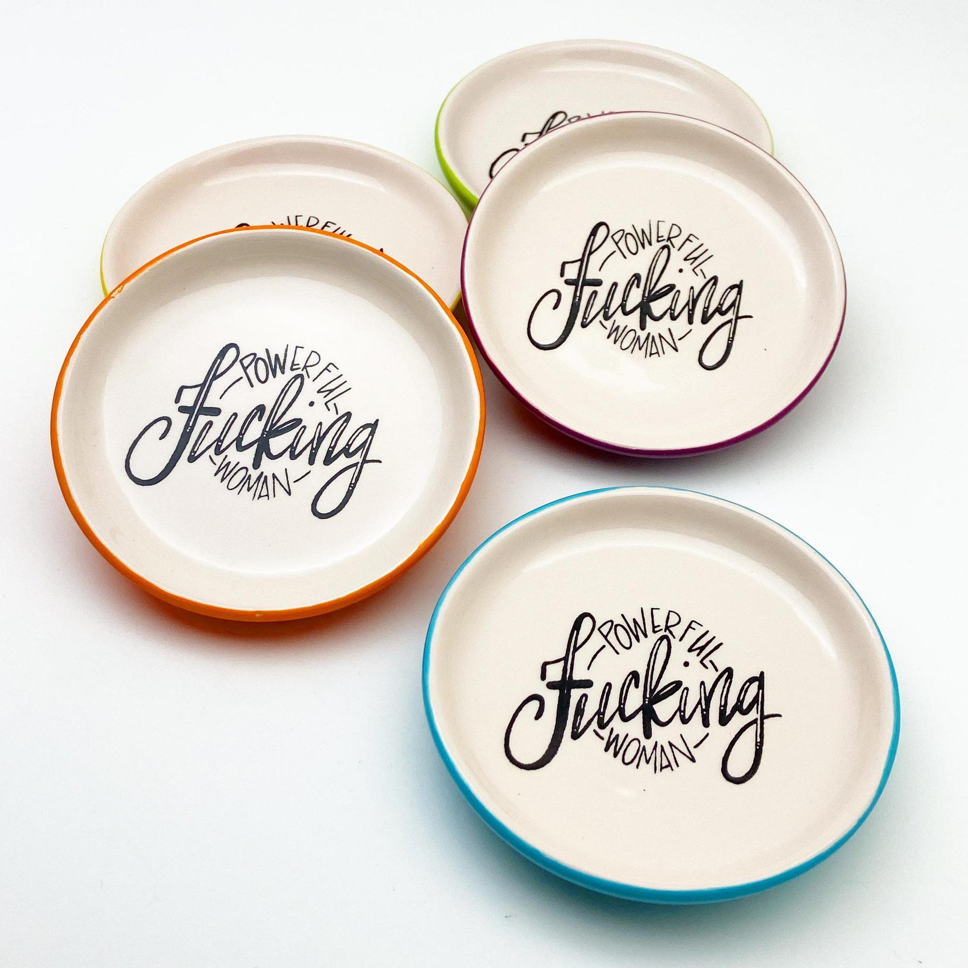 This artist is a hand-lettering genius! Each of these ceramic trays features her own bold, humorous quotes. Each tray is handmade, which means that no two trays are exactly alike. They makes us very happy. And, they are fantastic gifts. Empowered people, empower others. These trays are a bit of encouragement that comes with levity. The perfect combo.